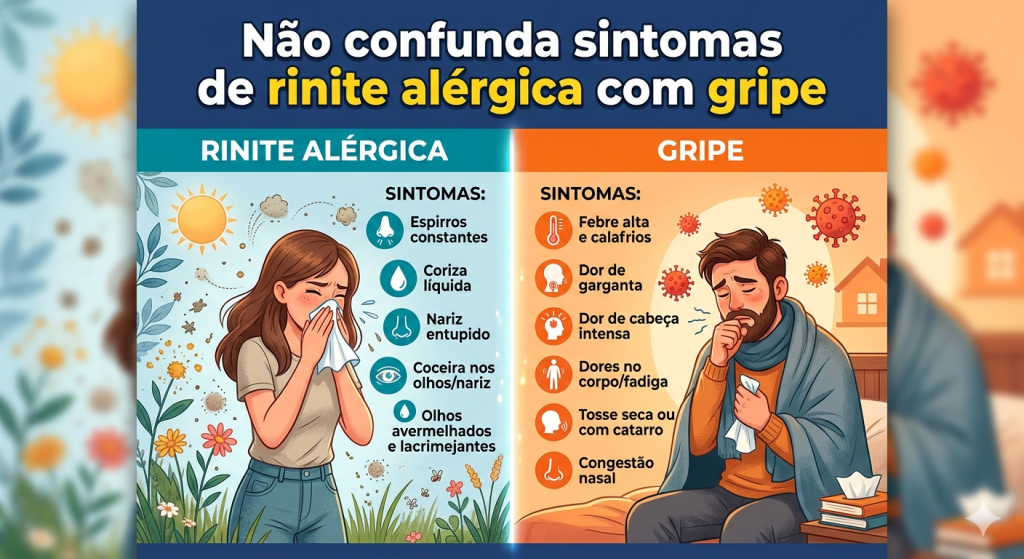 Confundir rinite alérgica com gripe é muito comum, mas cada condição exige cuidados diferentes. Identificar corretamente os sintomas evita uso inadequado de medicamentos e melhora a qualidade de vida do paciente.